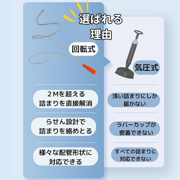 「柔らかく使いやすい」ワイヤーなので手の届かない奥の詰まりも安心です。