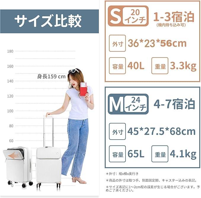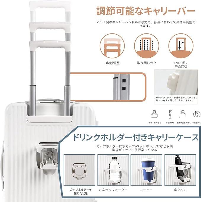 ■商品名[Spyplan] キャリーケース キャスター ストッパー付き スーツケース 機内持ち込み フロントオープン 可愛い 多機能 トップオープンパソコンケース キャリーバッグ カップホルダー付き トランク キャスターロック付き ジッパー 超軽量 人気 頑丈 TSAロック搭載 ブレーキ止まる360度回転 修学出張入院 4泊5泊6泊 ホワイト 78l
