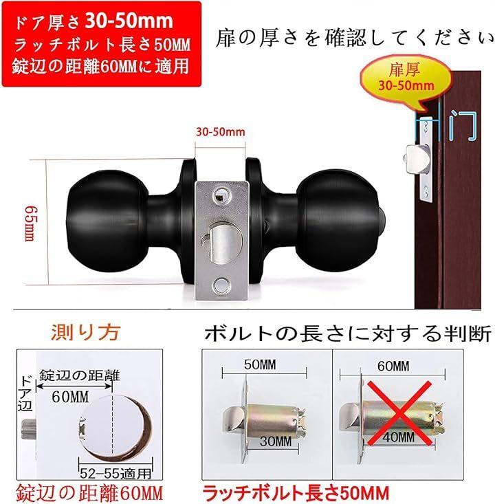 「鍵付きの仕様」ドア厚さ 30-50mm ラッチボルト長さ50MM 錠辺の距離60MMに適用。