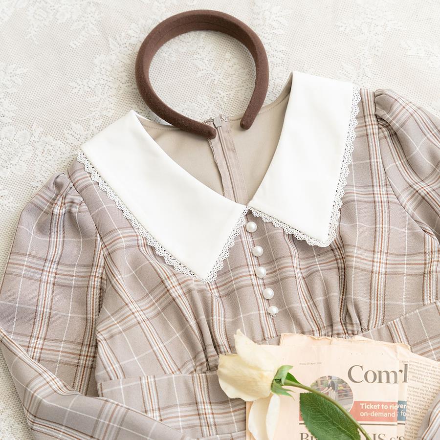 王道クラシカルガーリーな角襟ワンピースのご紹介。