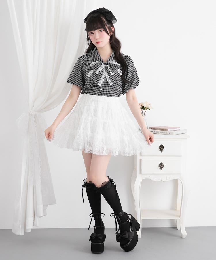 ミニスカートを合わせてとことんガーリーにいくもよし、ロングスカートを合わせてお姉さん風にいくもよしの万能ブラウスです。