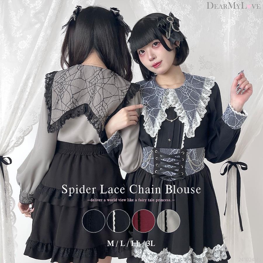 角襟に蜘蛛柄レース重ねていて、十字架柄レースフリルも付いています。