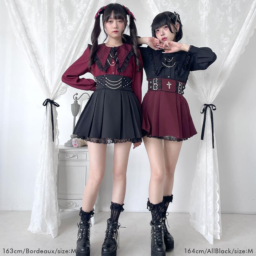 角襟に蜘蛛柄レース重ねていて、十字架柄レースフリルも付いています。