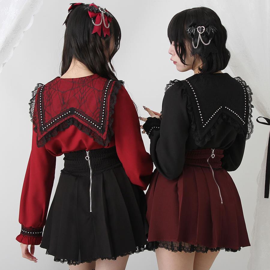 同じ蜘蛛レーススカートやプリーツスカートに合わせるのがオススメ♪
