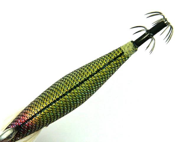 烏賊が認識しやすく、見やすいとされるBLUE夜光を使用しています。ブルーグローは、光の波長が長いので深場や、濁りにも効果的。
