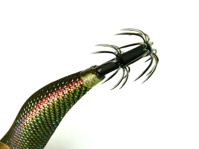 イカが抱きやすいフォール姿勢の約45度で、1mを約4秒の沈降速度。ボディの空気量を多くしてるので、沈下姿勢が安定した状態で、ゆっくりと沈んでいきます。ほ、セミオートマチックで、烏賊が抱きやすくなるように考えて作ってるので、3回シャクってフリーフォールで、簡単に抱いてきます。もちろん初心者から上級者まで使えますので、慣れてくればエギを自由自在に動かすことが出来ます。