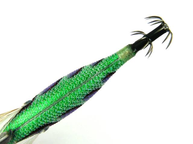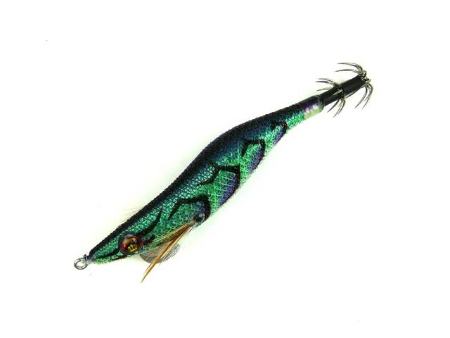 烏賊が認識しやすく、見やすいとされるBLUE夜光を使用しています。ブルーグローは、光の波長が長いので深場や、濁りにも効果的。