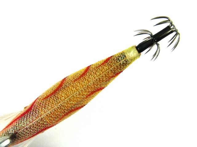 イカが抱きやすいフォール姿勢の約45度で、1mを約4秒の沈降速度。ボディの空気量を多くしてるので、沈下姿勢が安定した状態で、ゆっくりと沈んでいきます。ほ、セミオートマチックで、烏賊が抱きやすくなるように考えて作ってるので、3回シャクってフリーフォールで、簡単に抱いてきます。もちろん初心者から上級者まで使えますので、慣れてくればエギを自由自在に動かすことが出来ます。