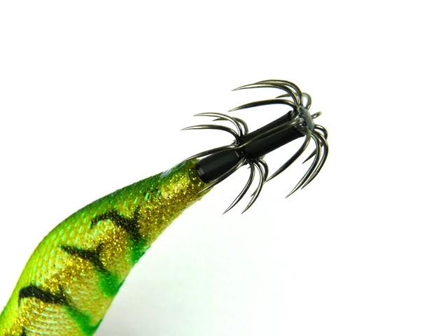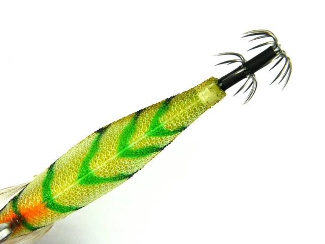 烏賊が認識しやすく、見やすいとされるBLUE夜光を使用しています。ブルーグローは、光の波長が長いので深場や、濁りにも効果的。