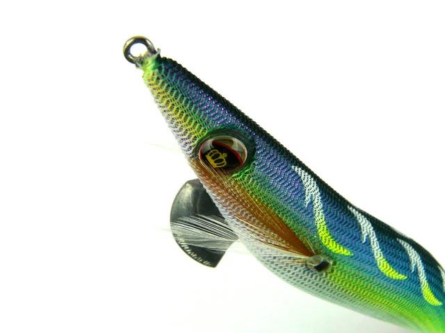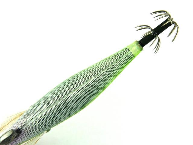 烏賊が認識しやすく、見やすいとされるBLUE夜光を使用しています。ブルーグローは、光の波長が長いので深場や、濁りにも効果的。