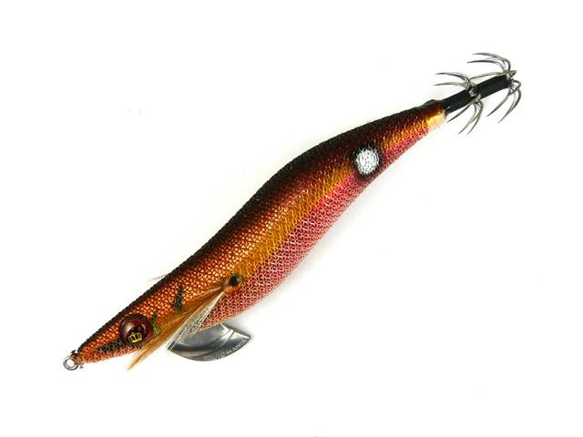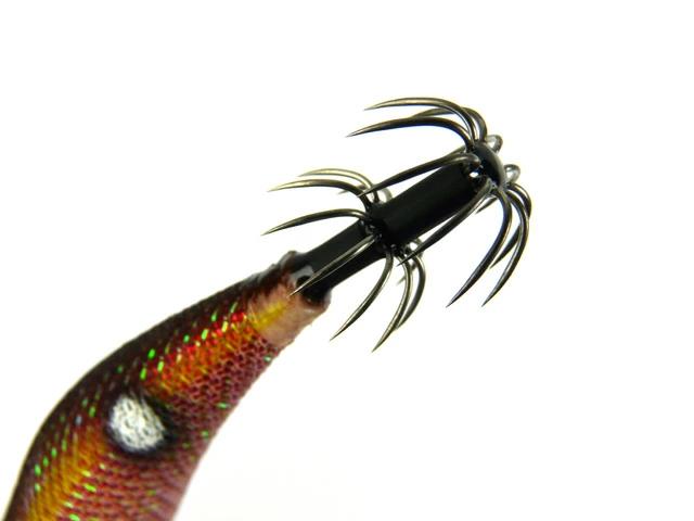 イカが抱きやすいフォール姿勢の約45度で、1mを約4秒の沈降速度。ボディの空気量を多くしてるので、沈下姿勢が安定した状態で、ゆっくりと沈んでいきます。ほ、セミオートマチックで、烏賊が抱きやすくなるように考えて作ってるので、3回シャクってフリーフォールで、簡単に抱いてきます。もちろん初心者から上級者まで使えますので、慣れてくればエギを自由自在に動かすことが出来ます。