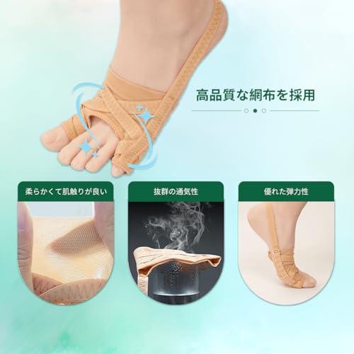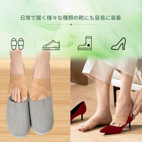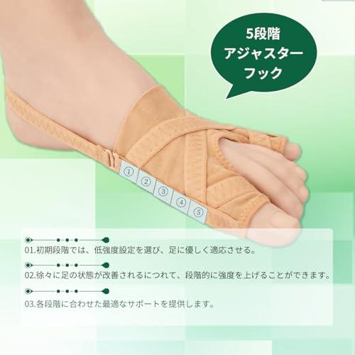【商品サイズ】左右兼用、2個入り。 サイズS:脚の長さ18?23cmに適しており、サイズL:脚の長さ23?28cmに適しています。 取り付けも簡単で、普通の靴下と同じように履くことができます。 靴下や靴を履いても締め付け感がありません。 【5段階アジャスターフック】側面にはアジャスターフックが付いており、強度は5段階で調整可能。足の状態に合わせて最も快適な位置に牽引の強度を調整できます。 【指が開く原理を応用】外反母趾や外反母趾患者向けに特別に設計されており、これらの問題を軽減します。 弾性バンドを通して優しく牽引し、親指と小指を外側に引っ張ります。 かかとにかかるストラップも滑り止め加工が施されており、常に正しい位置に留まります。 理想的な結果を得るために、毎日着用し、トラクションを定期的に調整してください。 【優れた通気性】通気性と抗菌防臭機能を備えた素材を使用。靴や靴下を履いても蒸れにくく、通気性は抜群です。 【幅広い用途】日常生活、ホームレジャー、立ち仕事、睡眠中など様々なシーンに適しており、ランニング、ウォーキング、ヨガなどの運動中にも使用できます。