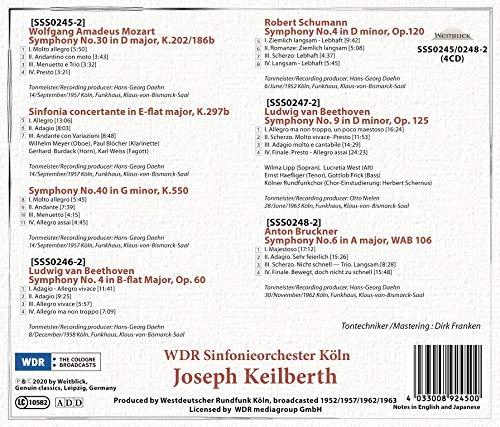 「カイルベルト+ケルン放送響 初出スタジオ録音集1952-63」CD1)(1)モーツァルト:交響曲第30番ニ長調K.202/186b(2)モーツァルト:協奏交響曲変ホ長調K.297b (Anh.C14.01)(3)モーツァルト:交響曲第40番ト短調K.550CD2)(4)ベートーヴェン:交響曲第4番変ロ長調Op.60(5)シューマン:交響曲第4番ニ短調Op.120CD3)(6)ベートーヴェン:交響曲第9番ニ短調Op.125「合唱」CD4)(7)ブルックナー:交響曲第6番イ長調