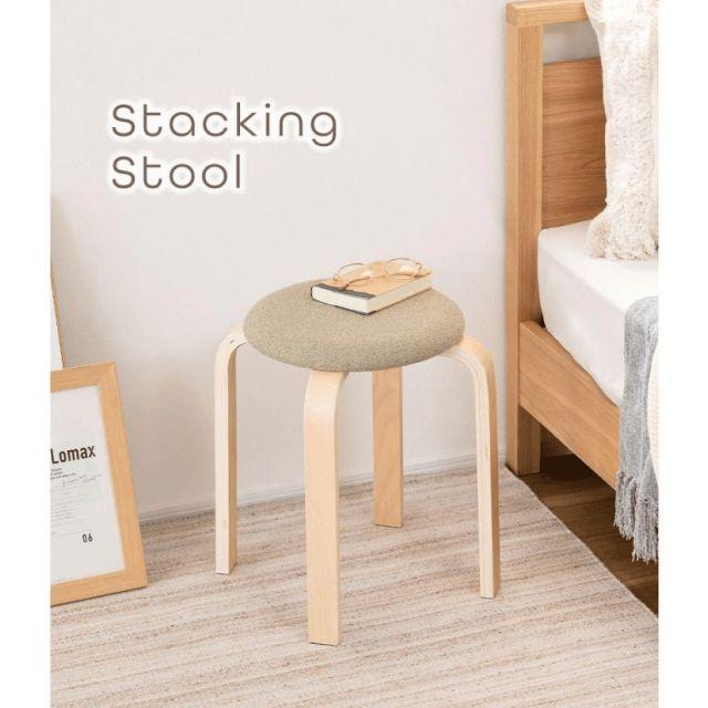天然木とニュアンスカラーの生地が魅力的なスタッキングスツール