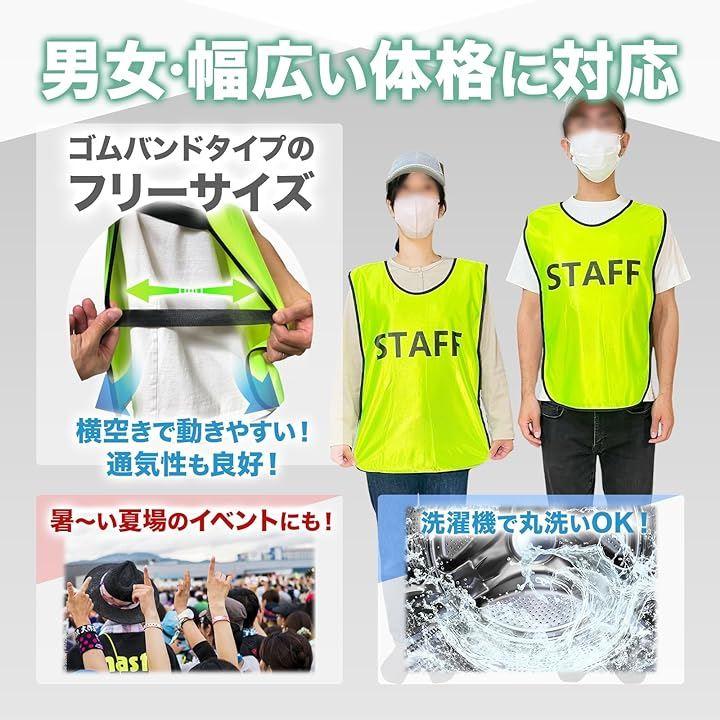 「抜群の視認性」遠くからでも視認性が良いカラーに加え、前後に大きく「STAFF」の文字が印刷されているため、しっかりと目立つことができます。