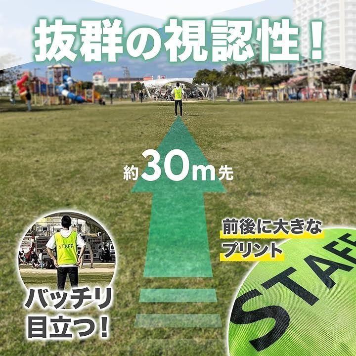 「抜群の視認性」遠くからでも視認性が良いカラーに加え、前後に大きく「STAFF」の文字が印刷されているため、しっかりと目立つことができます。