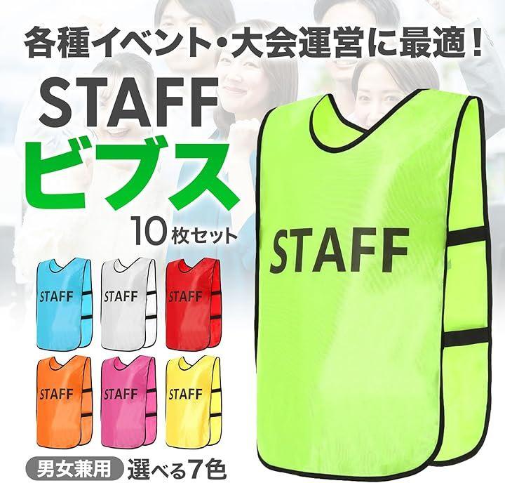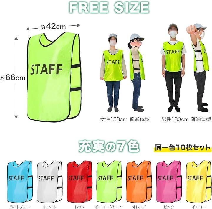 男女兼用フリーサイズなので、いろいろな方が使用可能なSTAFFビブス10枚セットです。