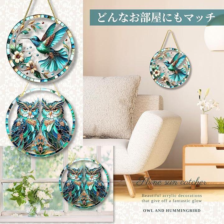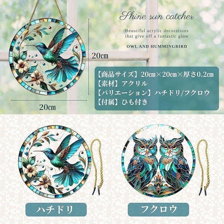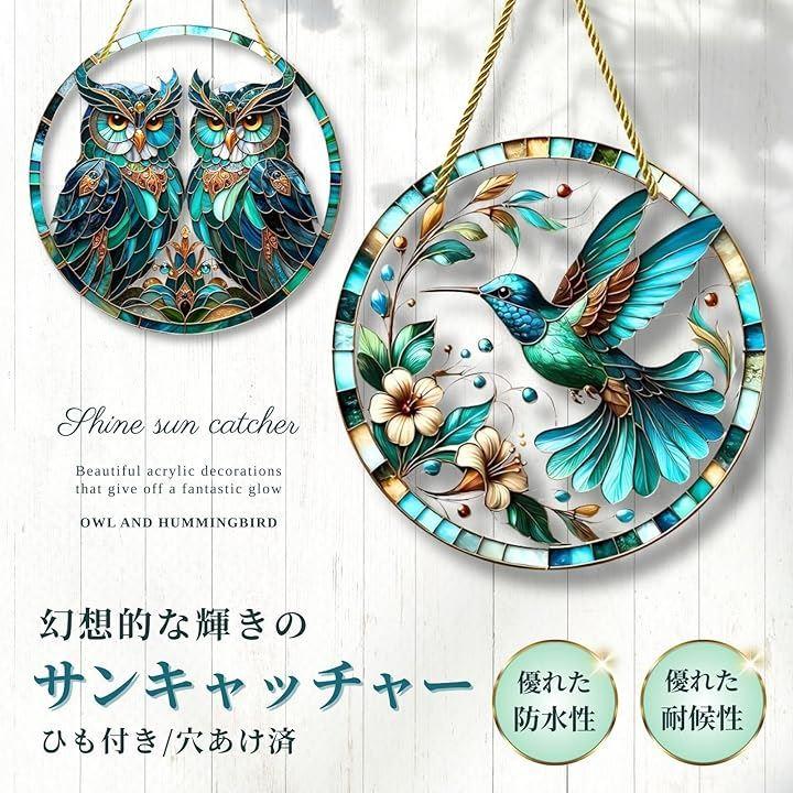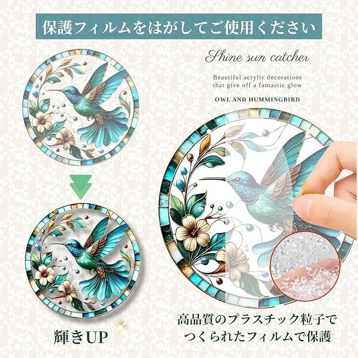 「幻想的な輝き」ステンドグラス風のデザインが太陽光を受けて幻想的な輝きを放ち、窓辺に吊るすだけで幸運と癒しの空間を演出。