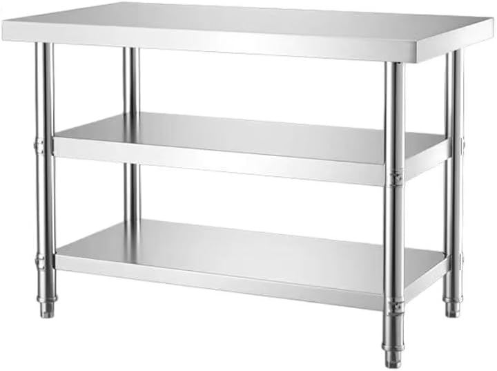 Stainless Steel 3-Tier Work Table, Commercial Grade, Kitchen Countertop, Work Table, Kitchen Shelf, Work Table, Kitchen, Restaurant, Home Use, Super Heavy Duty, Sturdy, Stable, Easy Assembly