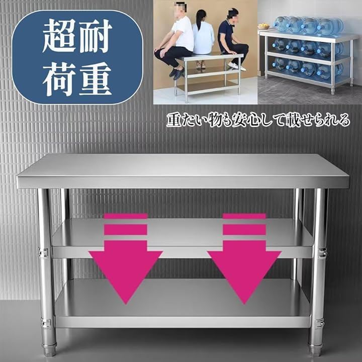 「高品質の素材」ステンレス鋼ワークベンチは150kg耐荷重可能な304ステンレス鋼製。