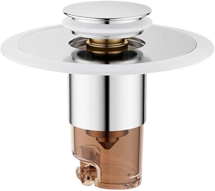 Stainless Steel Bathroom Sink Pop-Up Drain Stopper with Hair Catcher, Pure Copper Core, Odor and Insect Repellent, One-Push Operation, 27cm Diameter, Fits 26-48mm Drains