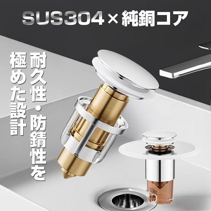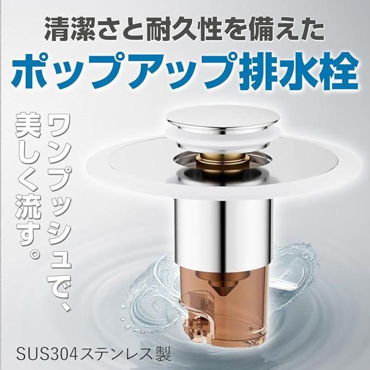 SUS304ステンレス製の洗面台用ポップアップ排水栓。