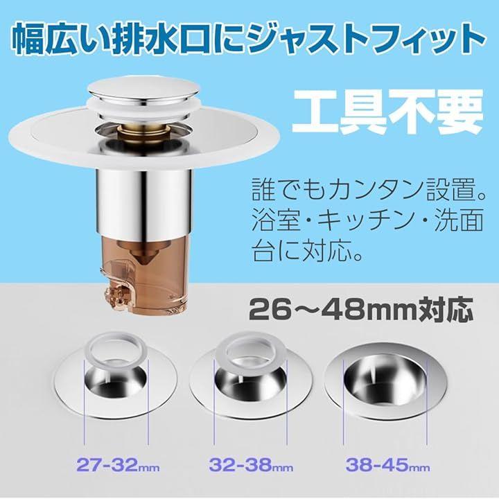 浴室やキッチンの排水口に幅広く活用でき、工具不要で簡単に設置可能です。