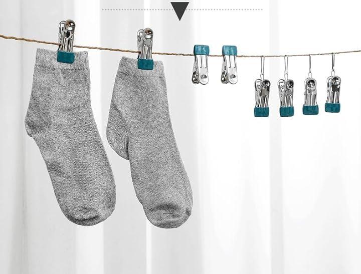 「便利な接続バックル付き」15個セットのクリップには接続バックルが付属しており、使用後はコンパクトにまとめて収納できます。