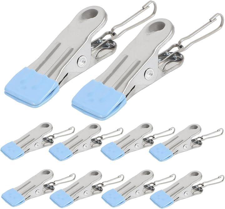 「商品詳細」フックなし:5.5 x 2.2cm フックあり:9 x 2.2cm セット:10個 素材:ステンレス+ラバー カラー:ライトブルー、ダークブルー、ピンク、グレー