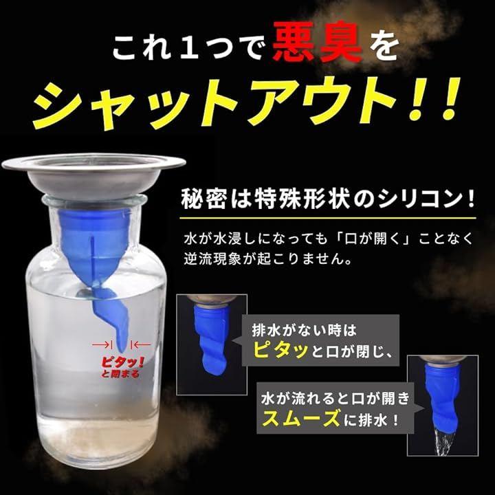 「これ1つで悪臭を防ぐ」本製品に通常の排水口カバーを取り替えるだけで、害虫の侵入を防ぎ、抗菌・防腐・消臭効果を得ることができます。