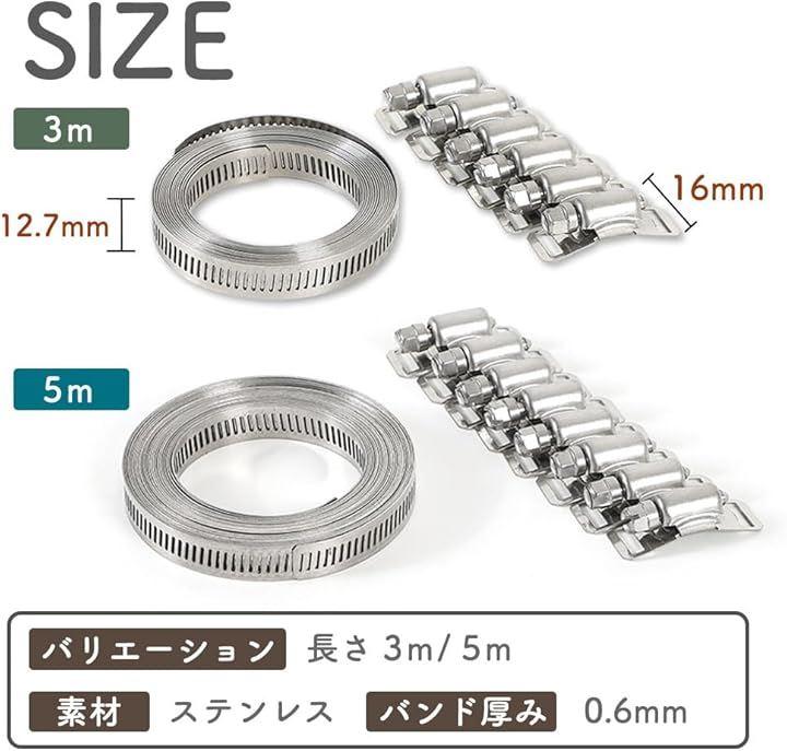 「長さ調節が可能なホースバンド」ホースバンドを必要な切り、必要な分だけ使えるという高い汎用性がある商品となっております。