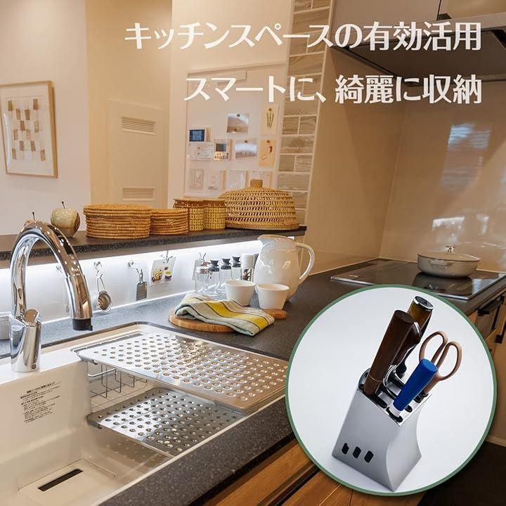 「収納スペース充実」包丁はもちろん、ナイフシャープナーやキッチンバサミの収納スペースもあります。