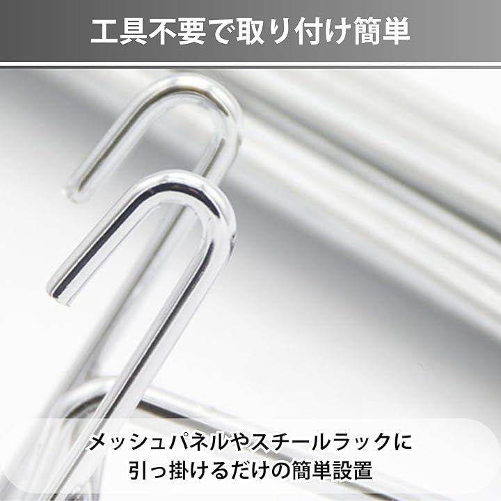 「工具不要で取り付け簡単」 メッシュパネルやスチールラックに引っ掛けるだけの簡単設置。