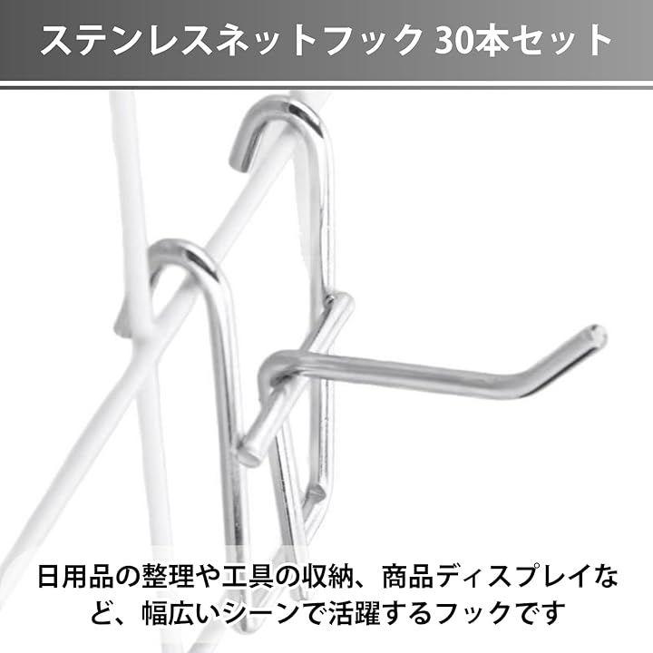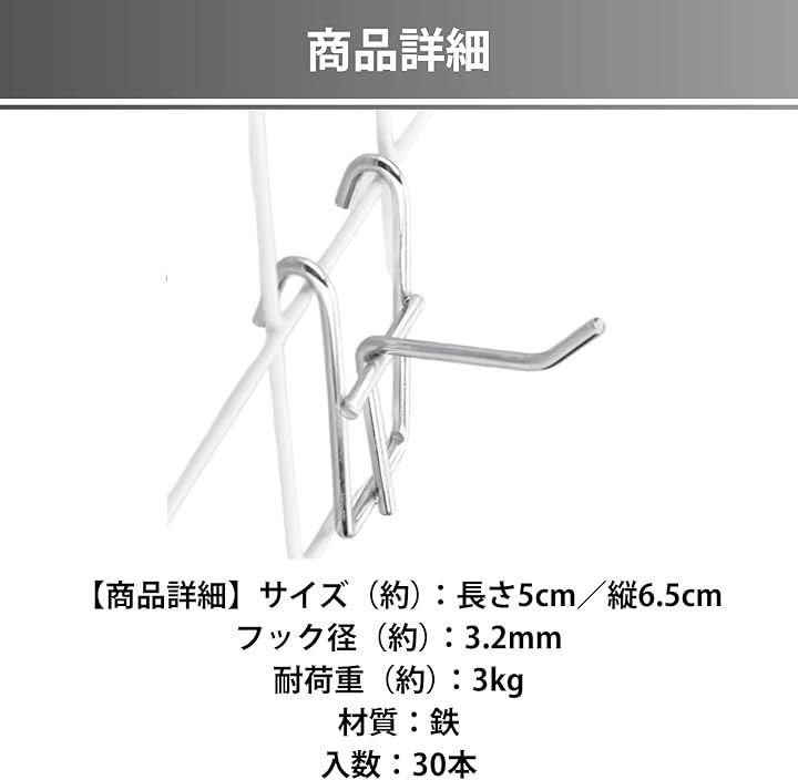 「大容量30本セットでまとめて整理」 日用品の整理や工具の収納、商品ディスプレイなど、幅広いシーンで活躍するフックです。