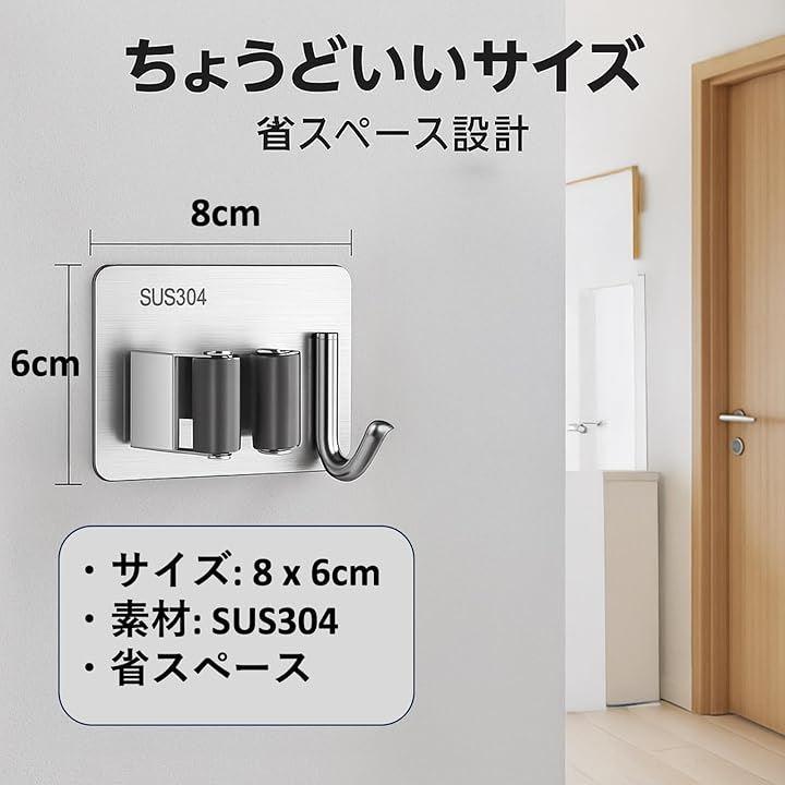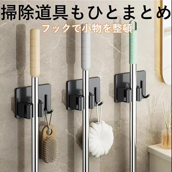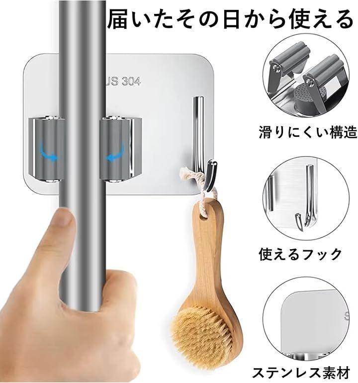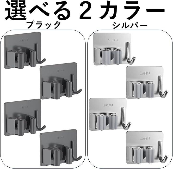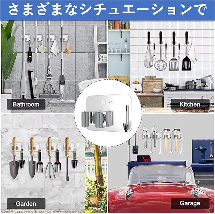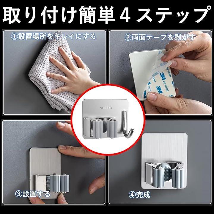 ステンレス製で耐久性が高い壁掛け用のモップホルダー4個セットです。