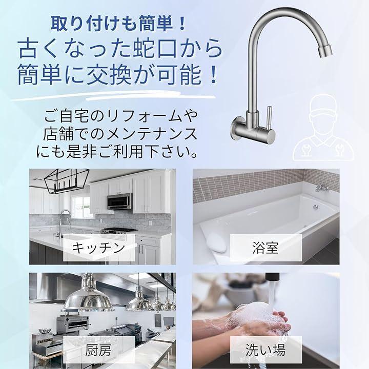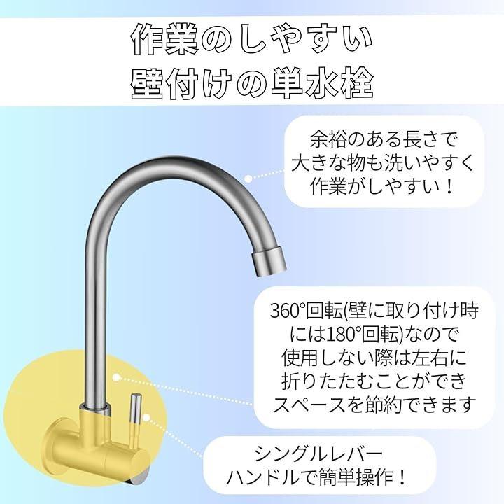 bath&bathステンレス製単水栓シングルレバー壁付け水栓蛇口横水栓キッチン厨房手洗い浴室水栓腐食なし