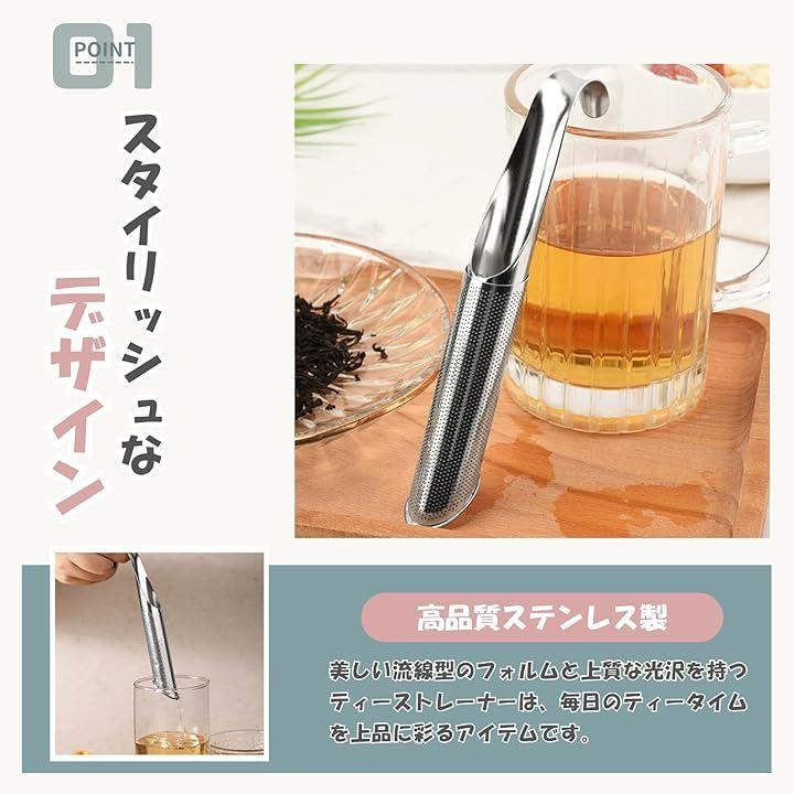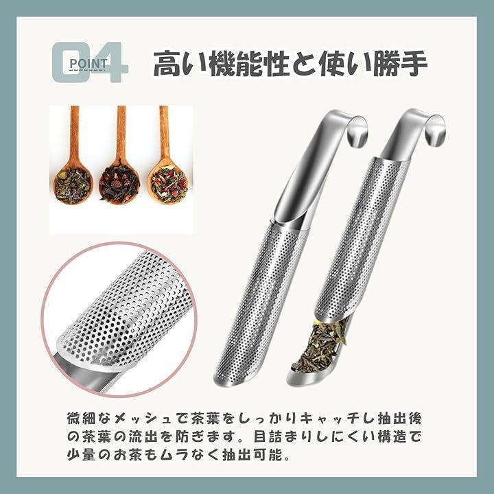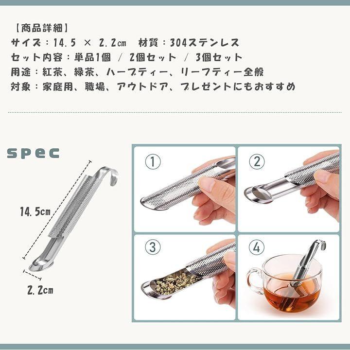 「商品詳細」 サイズ:14.5 x 2.2cm 材質:304ステンレス セット内容:単品1個 / 2個セット / 3個セット 用途:紅茶、緑茶、ハーブティー、リーフティー全般 対象:家庭用、職場、アウトドア、プレゼントにもおすすめ