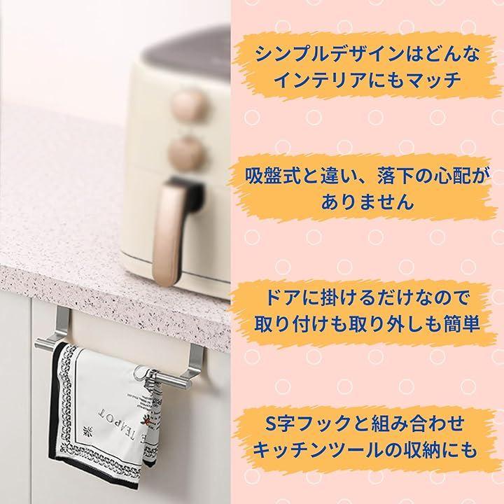 さらに、扉の内側に取り付ければキッチンツールの収納に、外側に取り付ければタオルや手袋掛けとしても活用可能。