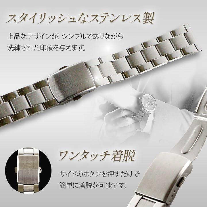 無垢構造により長期間使用しても変形や色褪せが少なく美しい輝きを保ちやすく、時計バンドとしての上品なデザインがシンプルでありながら洗練された印象を与えます