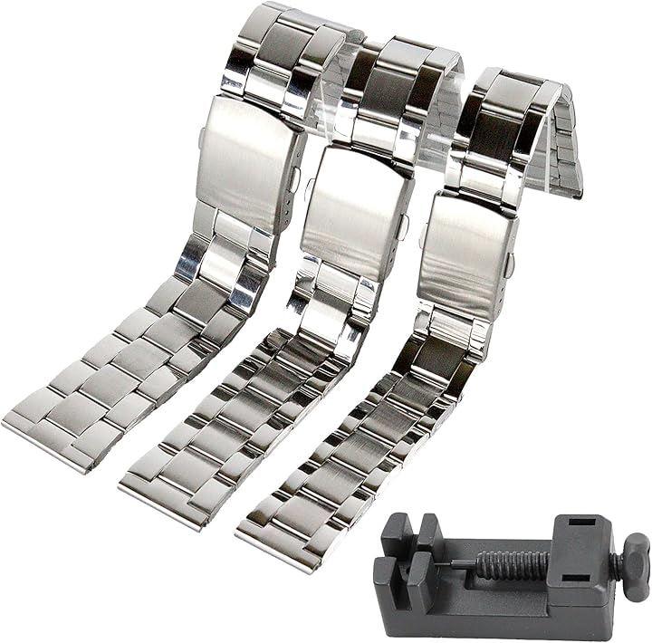 「ステンレス製 3連 腕時計 交換 ベルト ステンレス 工具付き3本セット」耐久性に優れた無垢ステンレスを使用。