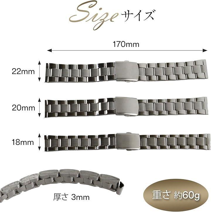 「18mmラグ幅と調整可能な長さ」時計取付部のラグ幅は18mmで、さまざまな時計に対応しています。