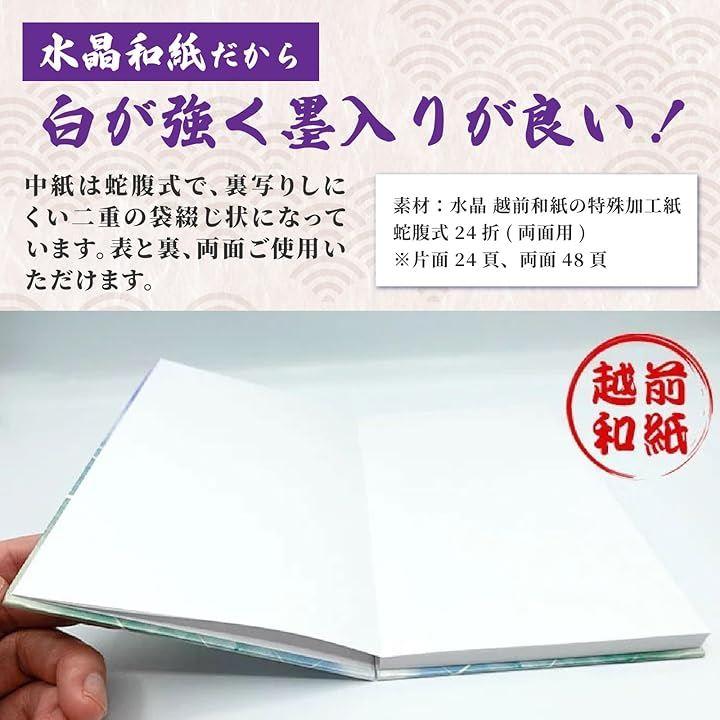 「サイズ」(約)縦18.3cmx横12.2cmx厚み1.3cm、重量:約170g 「表紙」金襴 「中紙」水晶入り越前和紙