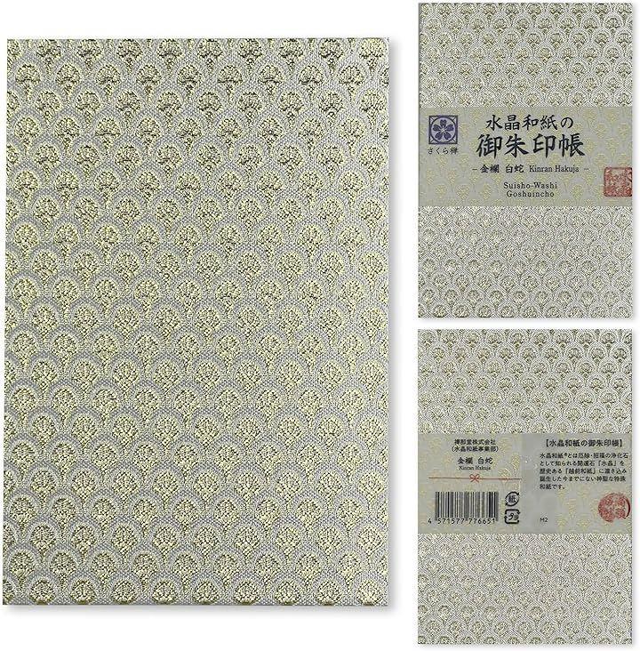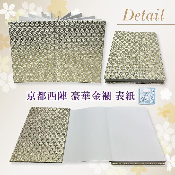 「サイズ」(約)縦16cmx横11cmx厚み1.3cm、重量:約140g 「表紙」京都 西陣 織物 高級金襴 「中紙」水晶入り越前和紙(特殊加工紙)