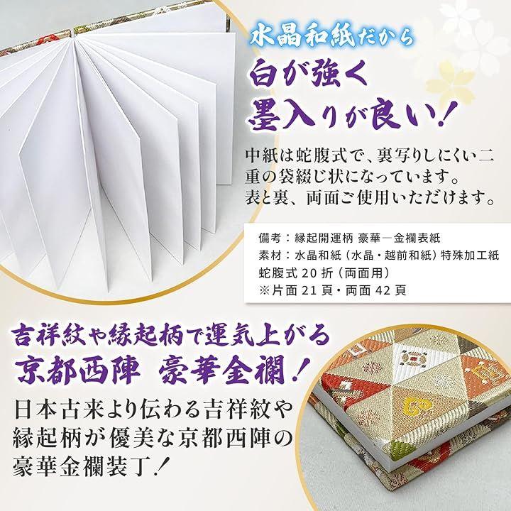 「プレゼントにも」縁起文様を秘める高級金襴表紙であなたの大切な方へのプレミアムなギフトとしても大変喜ばれます。
