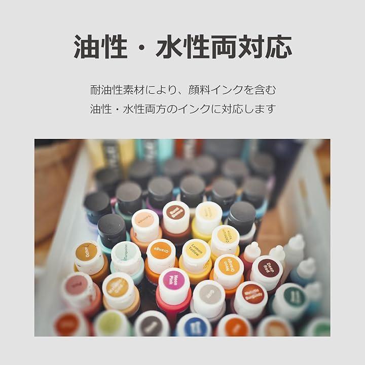 「油性・水性両対応」耐油性素材により、顔料インクを含む油性・水性両方のインクに対応します。