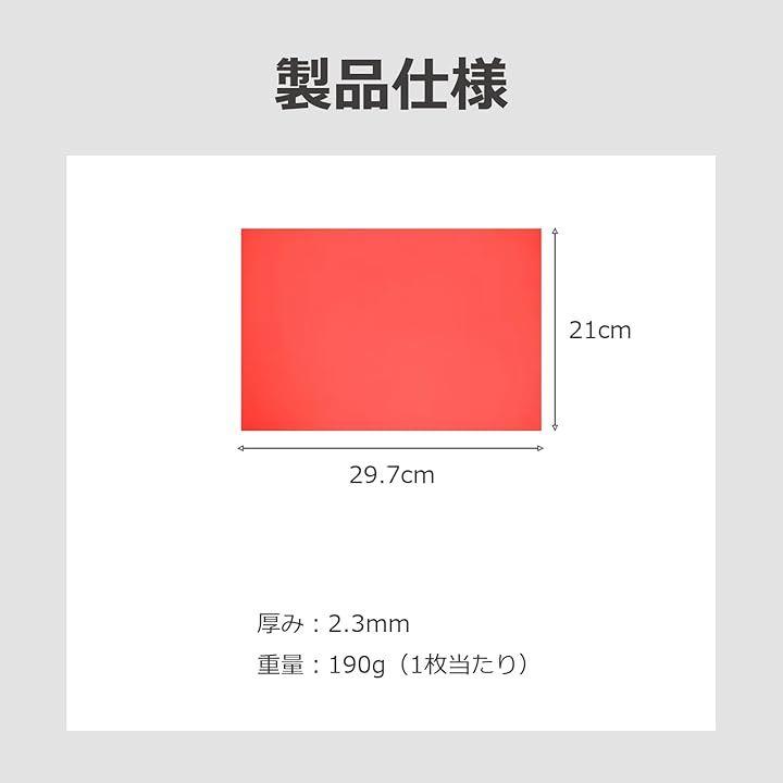 「製品仕様」「寸法」縦210mm 横297mm 厚さ2.3mm (A4サイズ) 「重量」約190g/枚 *両面テープ なしタイプ
