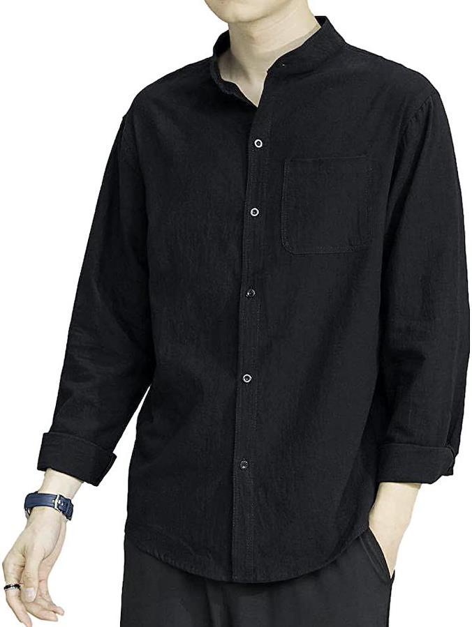 ・「スタンドカラーシャツ」スタンドカラーのメンズシャツ。