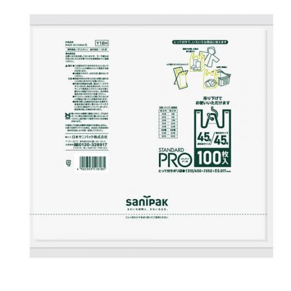 【商品名】STANDARD PRO とって付きポリ袋 ハーフ折り 白 45/45号
