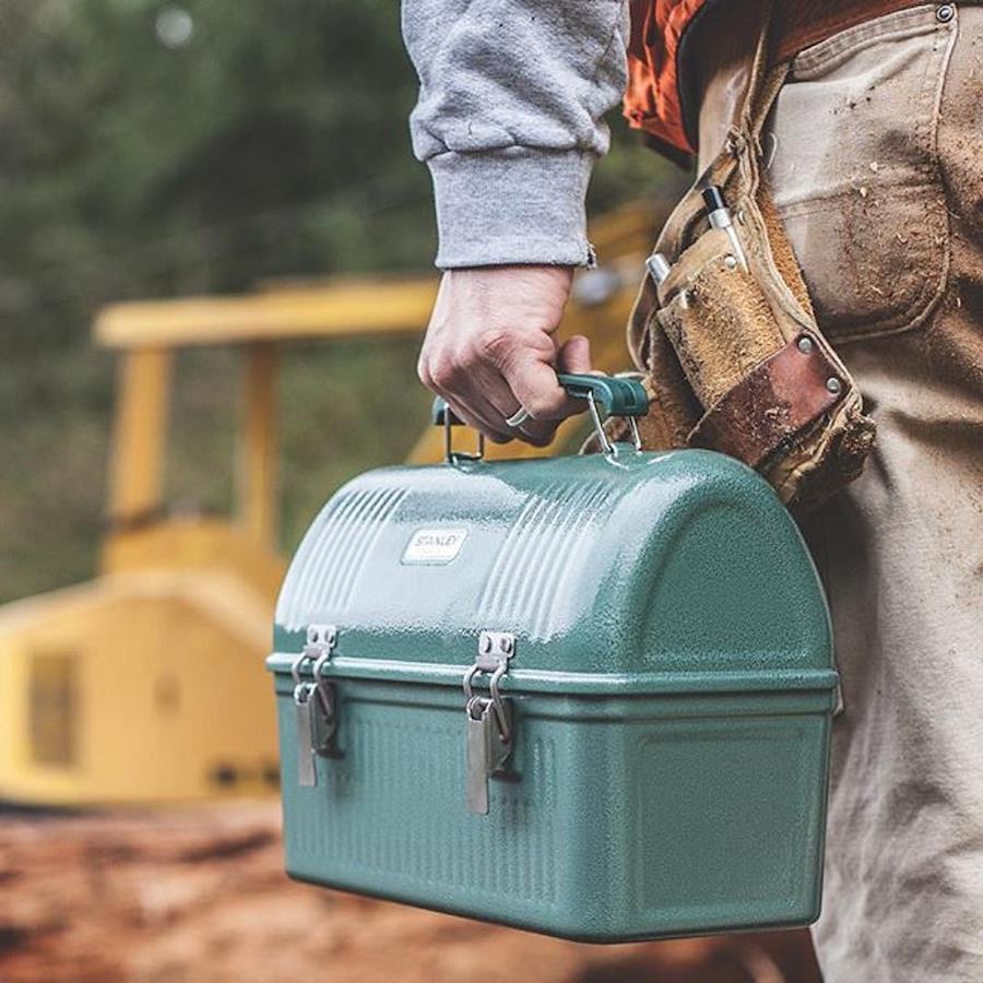 3営業日以内に発送≪新品未開封品≫:Stanleyのクラシック10クォート・ハマデーネ・グリーン・ランチボックスは、1日のランチや昨晩の残り物を頑丈なスタイルでパックします。このランチボックスは、他のスタンレーギアに適合する完全に詰める蓋を備えており、梱包を最適化するように設計されています。 0.6mmのspcdスチールは、このランチボックスに優れた耐久性を与えます。余分な耐久性のために丈夫なラッチとヒンジが追加されています。ドーム状の上部および金属ブラケットは、スタンレーの真空ボトルまたはマグカップを蓋の中に入れた状態で保管します。