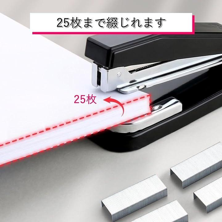 このホチキスは最大25枚の紙を綴じることができ、雑誌や書類の製本・中綴じに最適です。